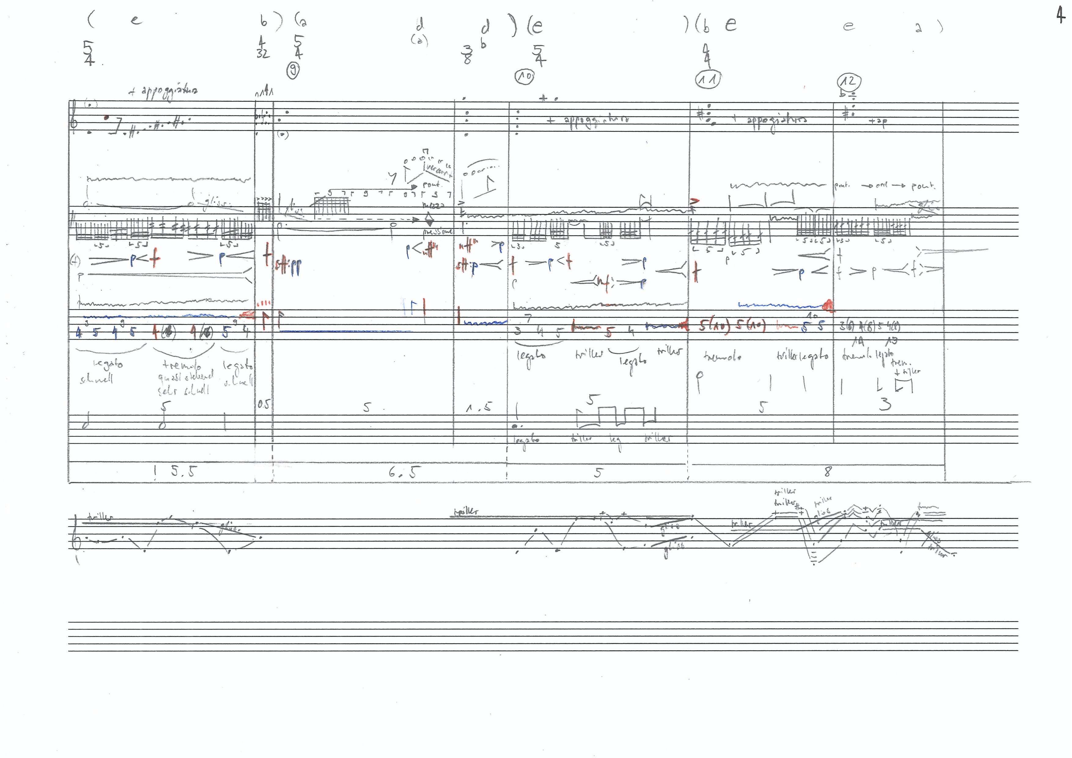 Sometimes the manuscript says more about the composition than the final score. In Replicare the manuscript represented nearly all important elements of the composition. The first five pages of the manuscript are represented as follows: